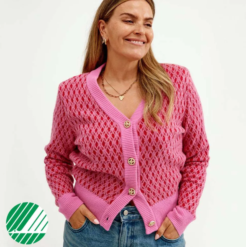 Monstersydd Cardigan Designad I Samarbete Med Stilikonet Janka Polliani. Trojan Ar Stickad I En Jacquardstruktur I 100% Mjuk, Svanenmarkt Merinoull. Cardiganen Har En Smickrande Passform Med V-Ringning Och Guldfargade Knappar. Langa Armar Och En Tightare Ribbad Kant Nedtill. Cardiganen Kommer Med Avtagbara Axelvaddar Som Tas Pa/Av Med Invandiga Tryckknappar.