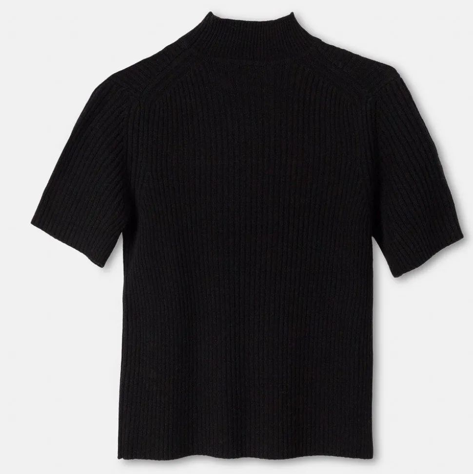 • Ribbstickad Halvpolo I Skon Ull.
