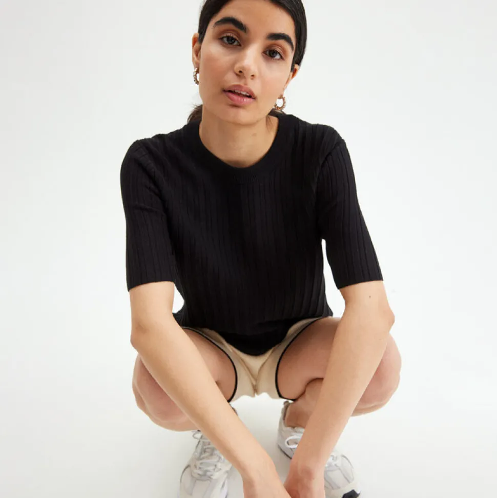 Tidlos, Finstickad T-Shirt Med Plissestruktur I Ekologisk Bomull Och Tencel™ Lyocell. T-Shirten Har En Rak Passform Med Ribbstickad Hals, Halvlanga Armar Och Ar Stickad I En Mjuk Och Skon Kvalitet Med Fint Fall I Materialet. T-Shirten Kan Stylas Med Matchande Byxor Och Kjol, Eller Jeans For En Avslappnad Var-/Sommarlook. Ett Nyckelplagg Som Du Kan Ha I Garderoben Ar Efter Ar.