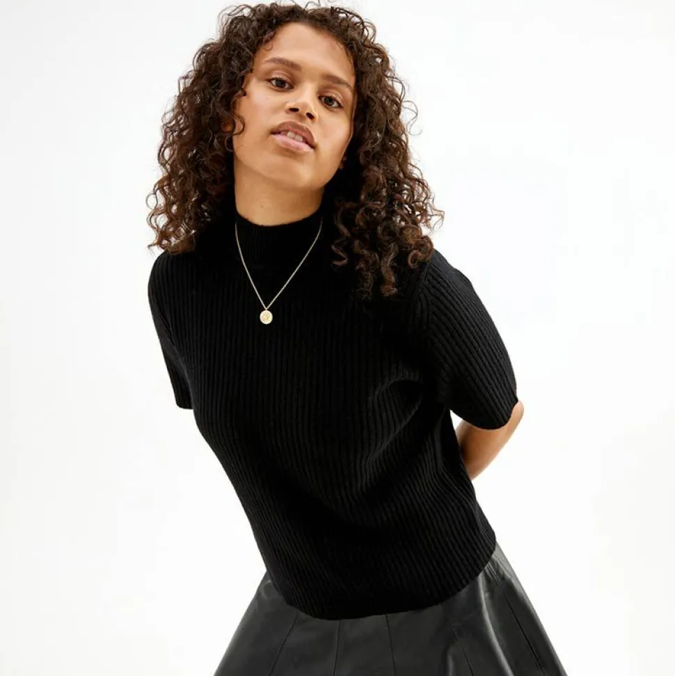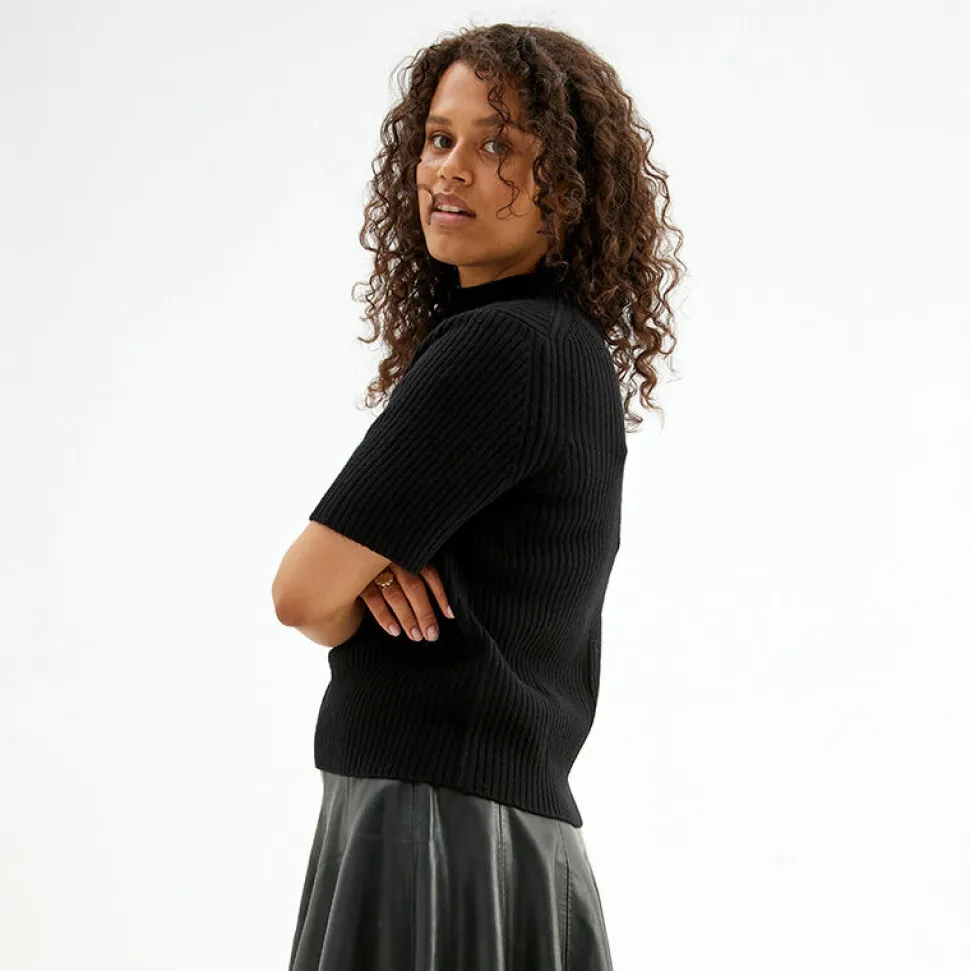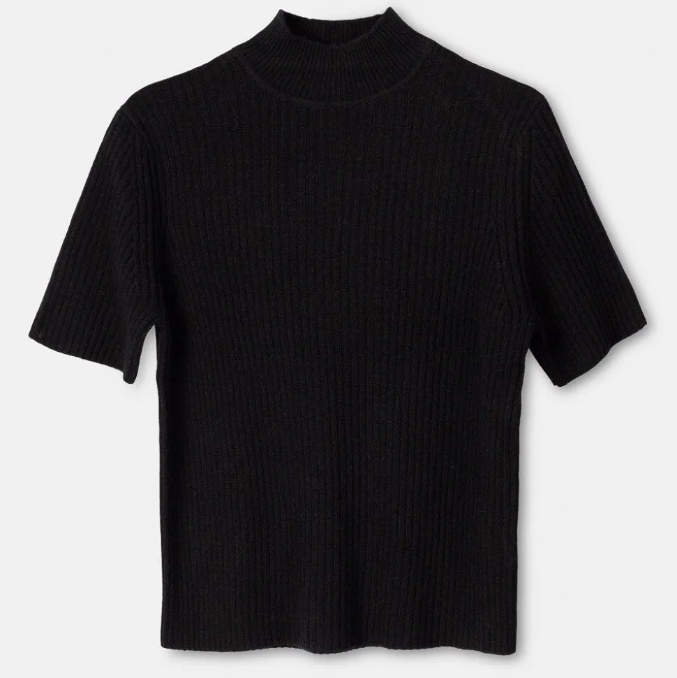• Ribbstickad Halvpolo I Skon Ull.