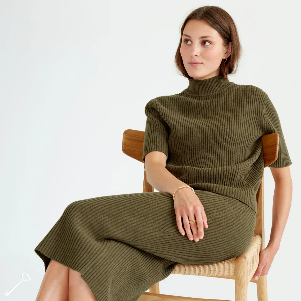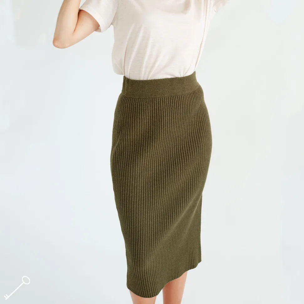 • Ribbstickad Vadlang Kjol I Skon Ull