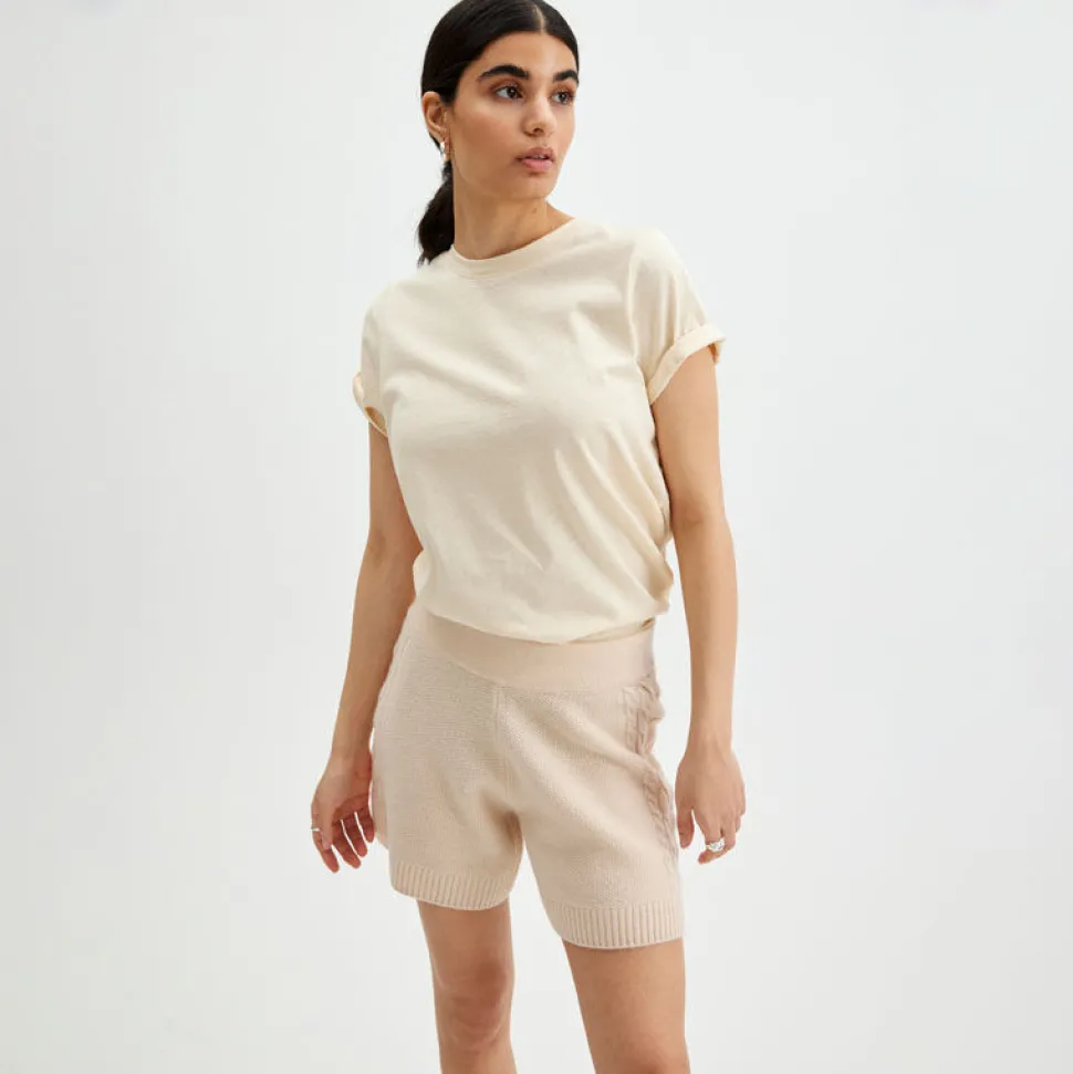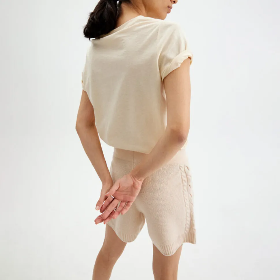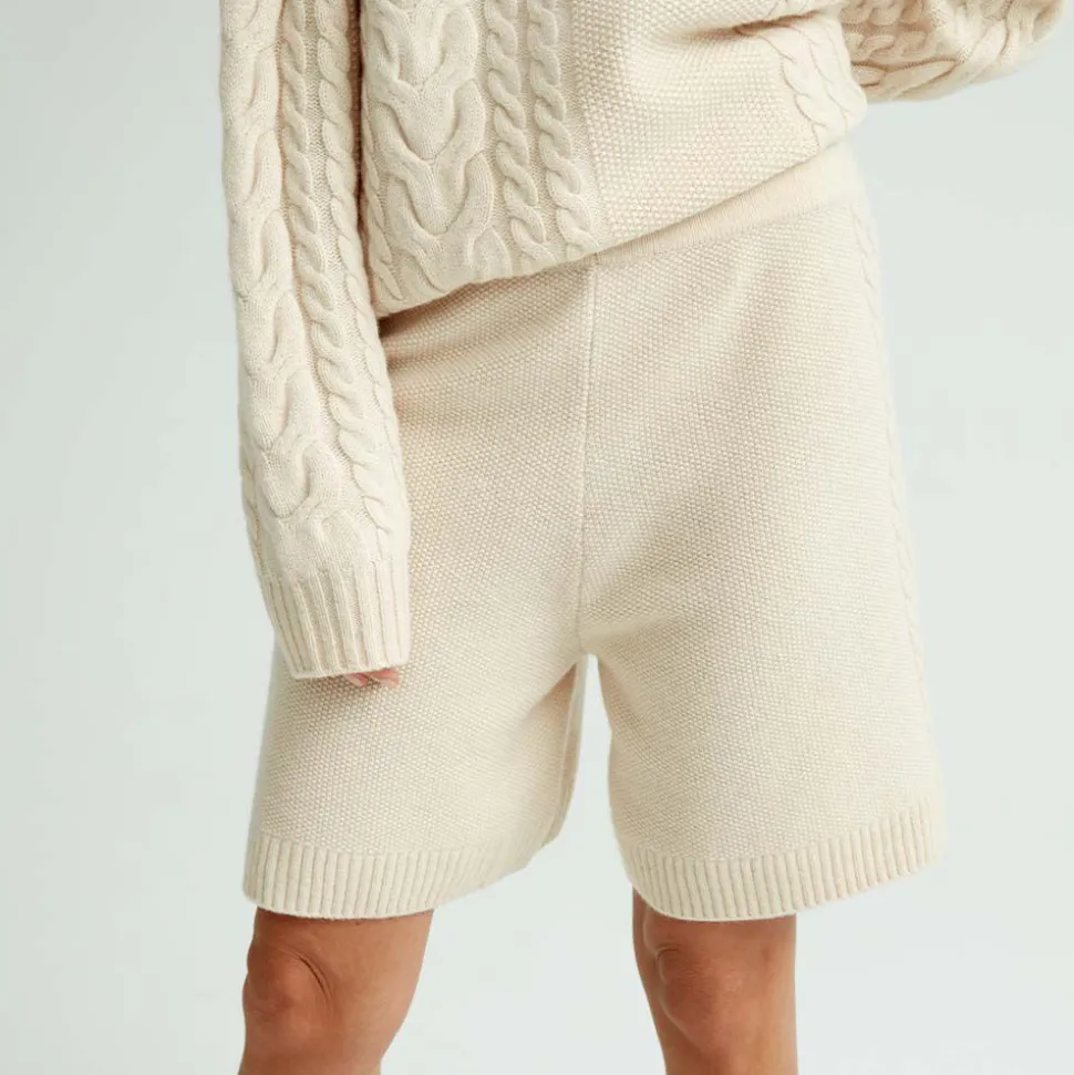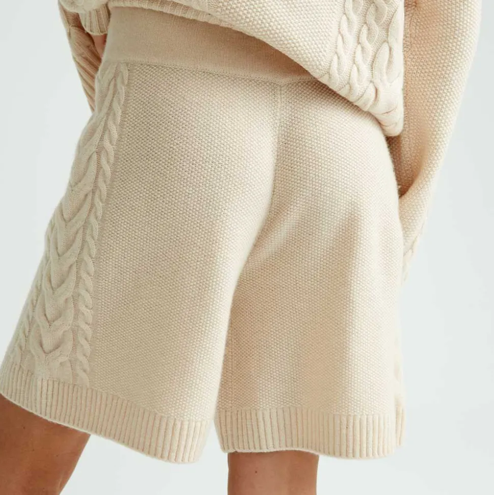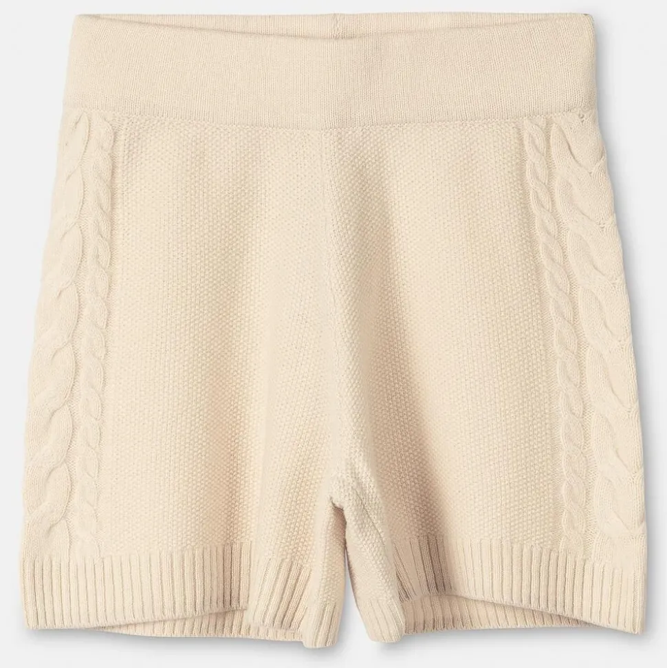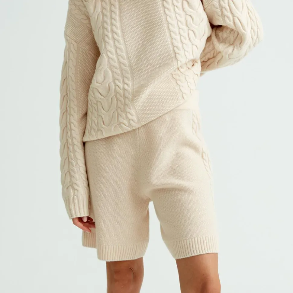 Stickade Shorts I Mjuk Och Latt Svanenmarkt Merinoull. Shortsen Har En Smickrande Passform, Kabelstickat Monster Langs Sidan Av Benen Och En Ribbstickad Kant Nedtill. Den Hoga Midjan Och Det Breda Midjebandet Gor Att Shortsen Sitter Snyggt Och Bekvamt. Plagget Ar Stickat I Ett Kvalitetsmaterial Som Ger En Exklusiv Och Snygg Passform. Styla Med En Matchande Kabelstickad Troja Eller Med En Oversized Troja Eller Skjorta.